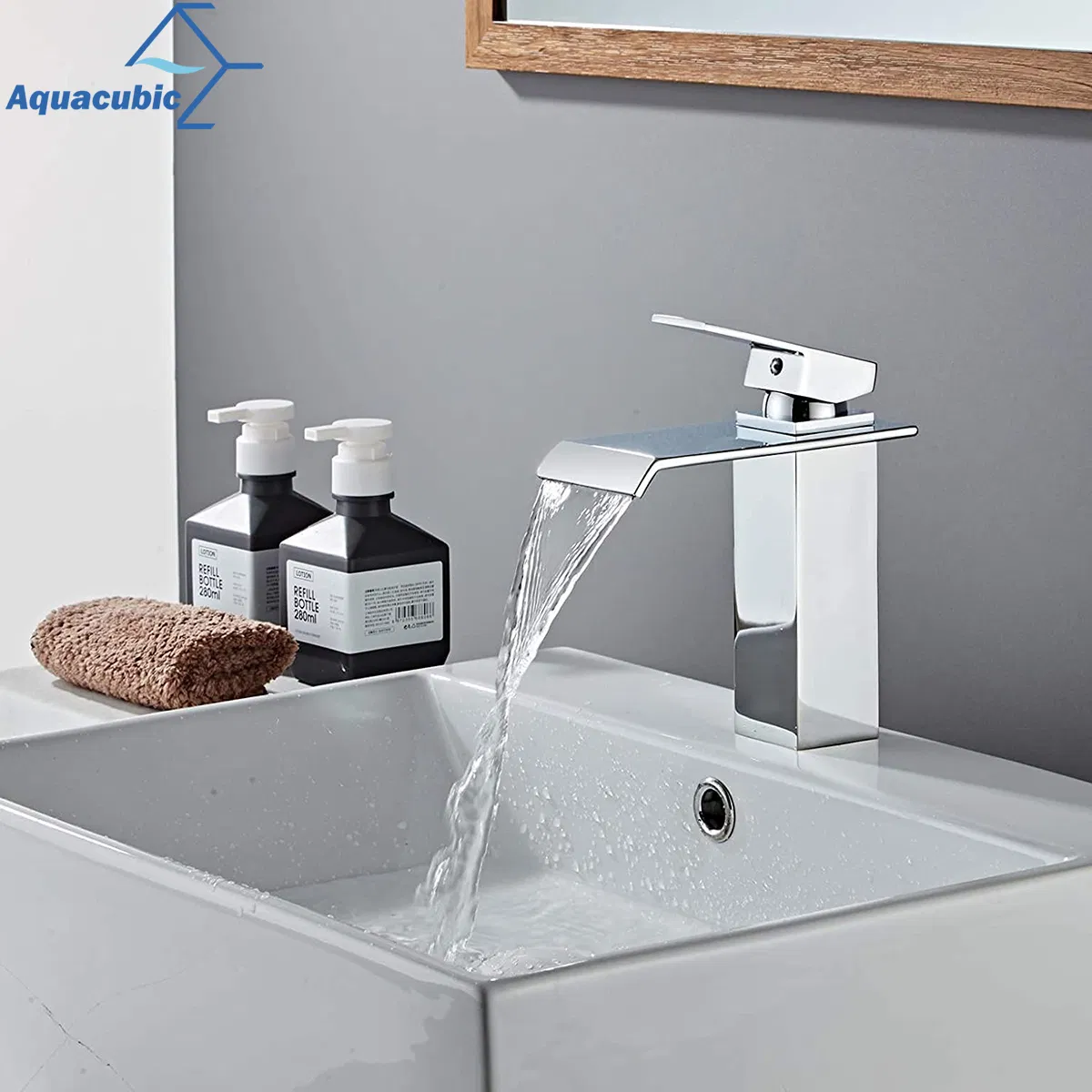 Aquacubic Cupc Certified Chrome Waterfall Bathroom Basin Water Faucet