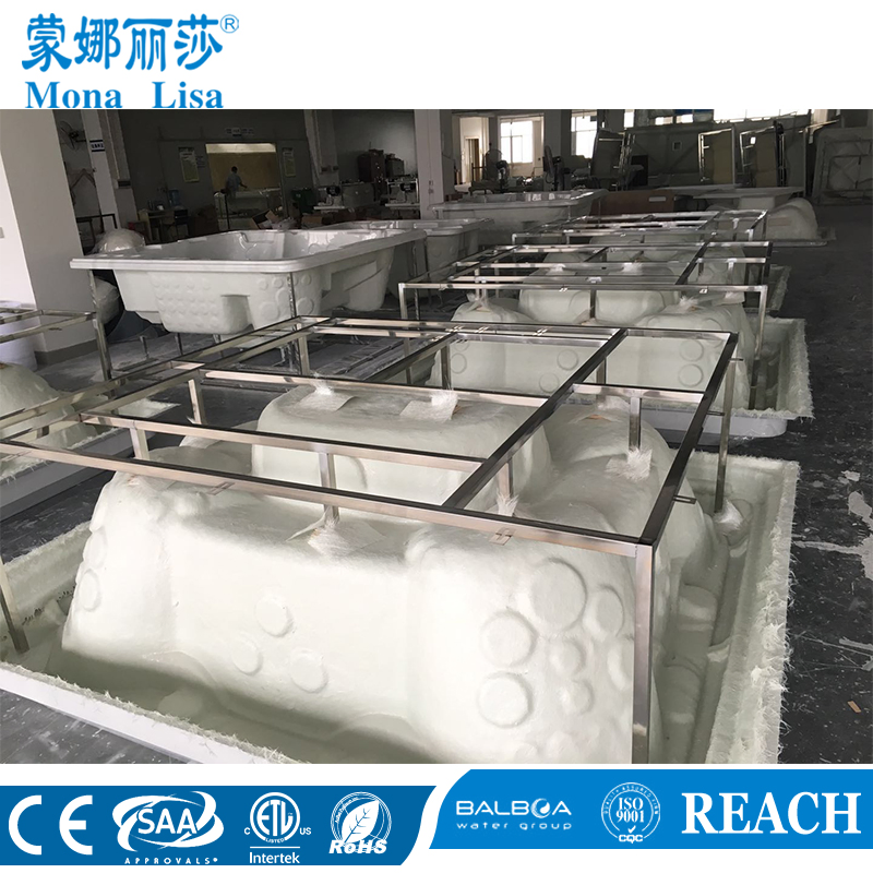 | Parameter: Material:USA Acrylic Lading parameter: Size:2000*2000*900MM Packing size:2100*2100*1000MM 20ft container can include:6sets 40ft container can include:13sets 40ft HQ container can include:13sets Function: 1.USA Balboa heating system 2.Illumination system 3.Massage jet system 4.USA Ozone disinfection system 5.Circulating filtration system 6.USA Balboa control system | SPECIFICATION: USA Acrylic Sheet:1pc USA Balboa System:1pc USA Ozone Sterilization:1set USA Balboa Heater(3KW):1pc Filter pump(0.5HP):1pc Water pump(2.0HP):2pcs Paper element filter:2pcs Total jets: 25pcs 4 inch jets: 1pc 3 inch jets: 7pcs 2 inch jets: 17pcs Pillow:2pcs Bottom light(3W):1pc Water pipe&valve:1batch Luxury bottom:1set Waterfall:1pc | Optional: Add heat insulation on tub body Add heat insulation on hem Add Fiberglass & PVC bottom Add cover Add Aroma Add small LED light Add IPHONE box & Amplifier Add Bluetooth function & Ordinary speaker Add pop-up speaker Add DVD and DVD box Add LED light waterfall Add LED light fountain Add 17" waterproof TV Add 32"waterproof TV Add Ladder Add Bar Add Handle Add PS Stool Add Kickstand of Cover |