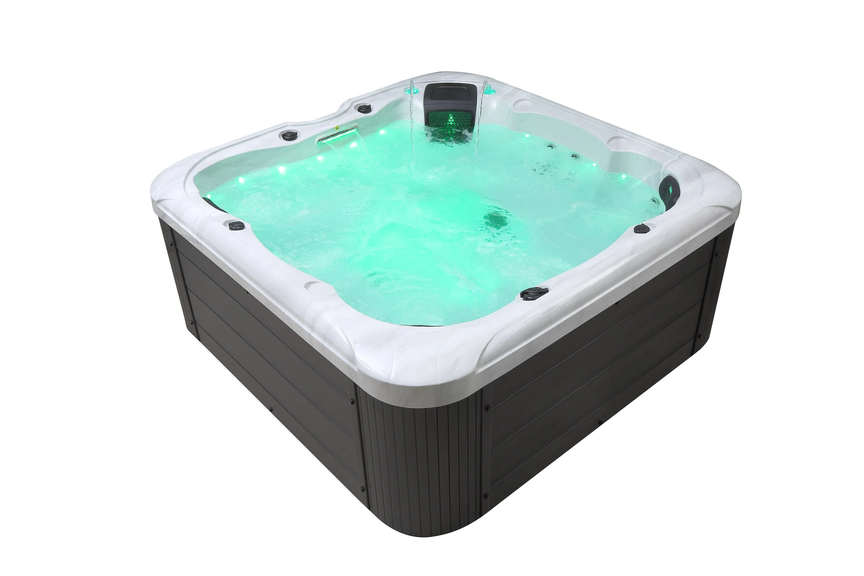 | Parameter: Material:USA Acrylic Lading parameter: Size:2150*2150*900MM Packing size:2150*900*2300MM 20ft container can include:5sets 40ft container can include:13sets 40ft HQ container can include:13sets Funtion: 1.USA Balboa heating system 2.Illumination system 3.Massage jet system 4.USA Ozone disinfection system 5.Circulating filtration system 6.USA Balboa control system 7.Computer control panel | SPECIFICATION: Two-speed Water pump (3HP): 1pcPaper element filter: 1pc USA Ozone-sterilization: 1pc USA Heater(3KW): 1pc Plastic hem: 1set Pillow: 3pcs USA Balboa Control panel:1pc Total jets: 36pcs 5 inch jets: 1pc 3 inch jets: 10pcs 2 inch jets: 25pcs Bottom light(3W): 1 pc Water pipe & valve: 1batch Outlet valve switch at hem:1pc | Optional: 1)Add DVD and DVD box:USD173.00/set 2)Add heat insulation on tub body :USD276.00/set 3)Add Cover:USD346.00/set 4)Add small LED light:USD4.00/pc 5)Add Luxury bluetooth function& Ordinary speaker:USD150.00/set 6)Add Bluetooth function&Ordinary speaker USD75/set 7)Add heat insulation on hem:USD130.00/pc 8)Add pop-up speaker:USD78.00/2pcs 9)Add fountain with light:USD69.00/pc 10)Add waterfall with light:USD35.00/pc 11)Add Tempered glass Bottom:USD346.00/pc 12)Add Three-step Luxury PS Ladder:345.00/pc 13)Add Three-step Classic PS Ladder:216.00/pc 14)Add PS Bar:86.00/pc 15)Add Long PS Bar:129.00/pc 16)Add Handle:70.00/pc 17)Add PS stool:43.00/pc |