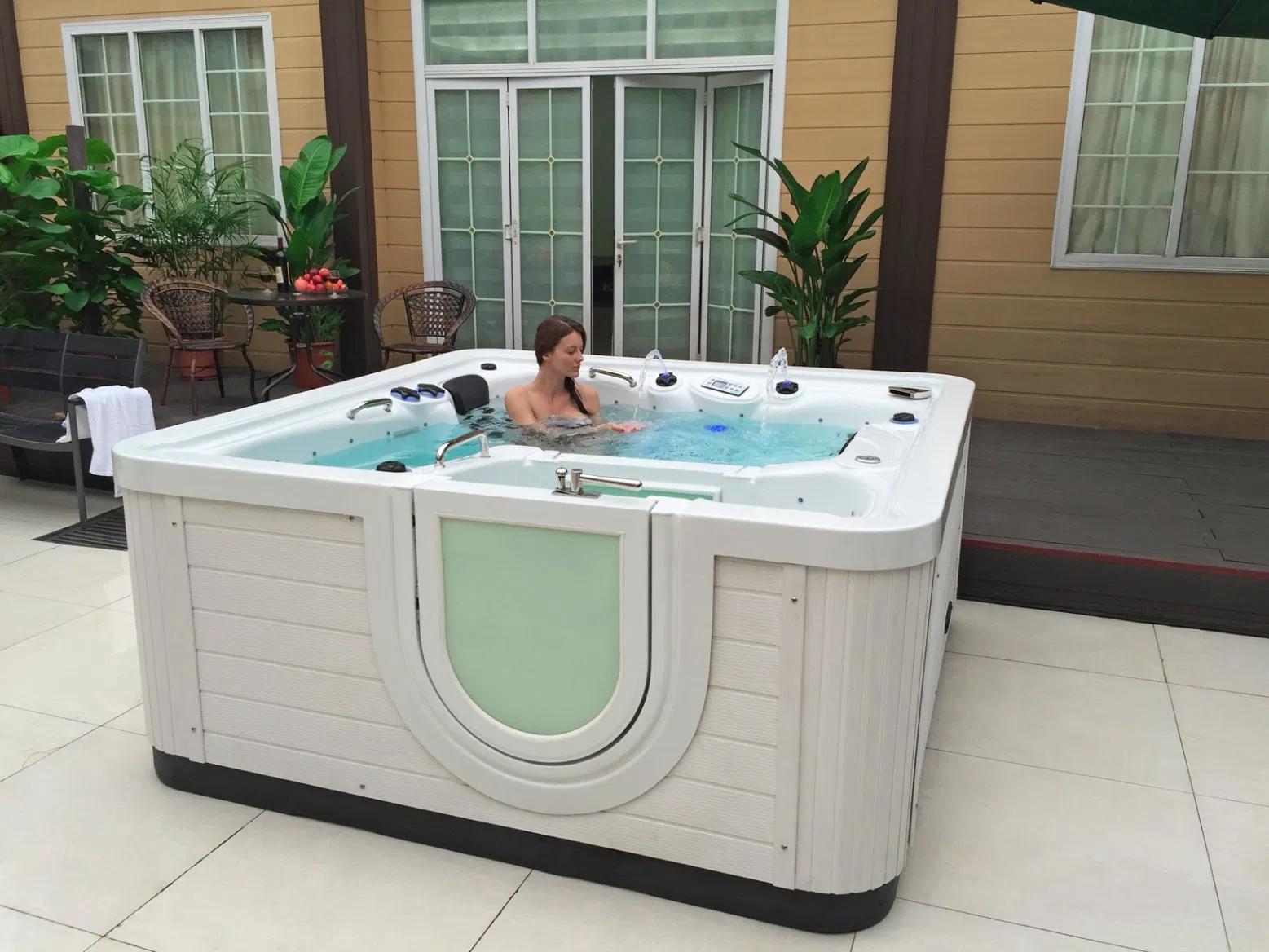 Wanna an outdoor walk-in bath with your family to enjoy the pleasure of family hydromassage? Celebrity Series model Spa-628 is designed to make your spa dream come true. Walk-in whirlpool bathtub Spa-628 is offering dual doors to make entry and exit from the spa bath a simple process and provide you safty, convenient and comfort. When you enter into the walk-in jacuzzi, you simply lie on the lounger or sit in the seat to begin hydromassage bathing with your family. A high, wide, and deep comfortable therapeutic massage seats provide you with a more enjoyable, safe and relaxing bath, which increase your circulation; reduce your aches and pains; and relax your muscles and joints. Directional whirlpool hydrotherapy therapeutic jets massage system gives an incomparable therapeutic effect and offers the user that well deserved spa experience. Celebrity Series provide you greater range of motion and freedom of movement while providing you with the ultimate in a healthy and luxurious hot tub bathing experience with your family.